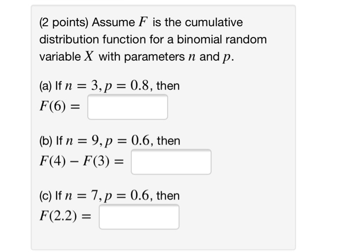 19+ Binomial Cdf Function Gif. Because the cdf is a summation of pmfs, we can use this formulation to calculate the binomial coefficient (the log of which is b in the function above) for pmf. The cumulative distribution function (cdf) of the binomial distribution is what is needed when you need to compute the probability of observing less than or more than a certain number of.